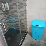 Zur Ausstattung des Badezimmers gehören eine getrennte Toilette und eine Dusche sowie Toilettenartikel und Handtücher.